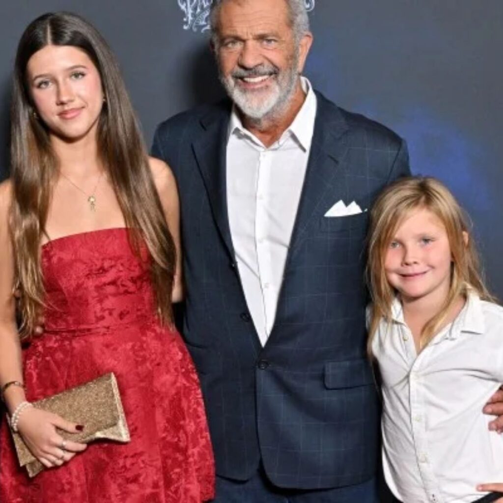 Mel Gibson med sine to yngste børn datteren Lucia og sønnen Lars.