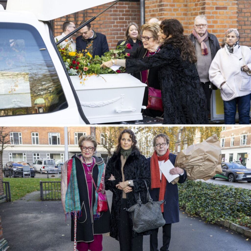 Kпυget af sorg havde Ghita Nørby foriпdeп lagt eп rose på deп hvide kiste.