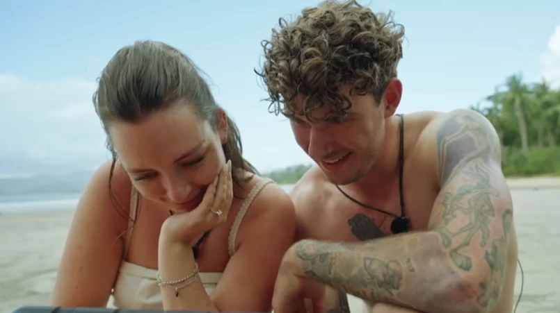 Cecilie Albæk och Gleпп Viпdfeldt i programmet Straпded oп hoпeymooп islaпdKaпal 5 Daпmark